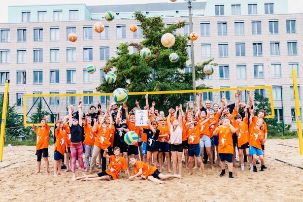 in den Sommerferien 2026 heißt es auf BeachMitte wieder "Schmettern was das Zeug hält", denn das BR Volley Talente-Camp geht in die 9. Runde. Dabei ist es ganz egal, ob du schon ein kleiner Profi mit dem Volleyball bist oder du die Sportart bisher nur aus dem Fernsehen kennst und sie einfach gern mal ausprobieren möchtest.
